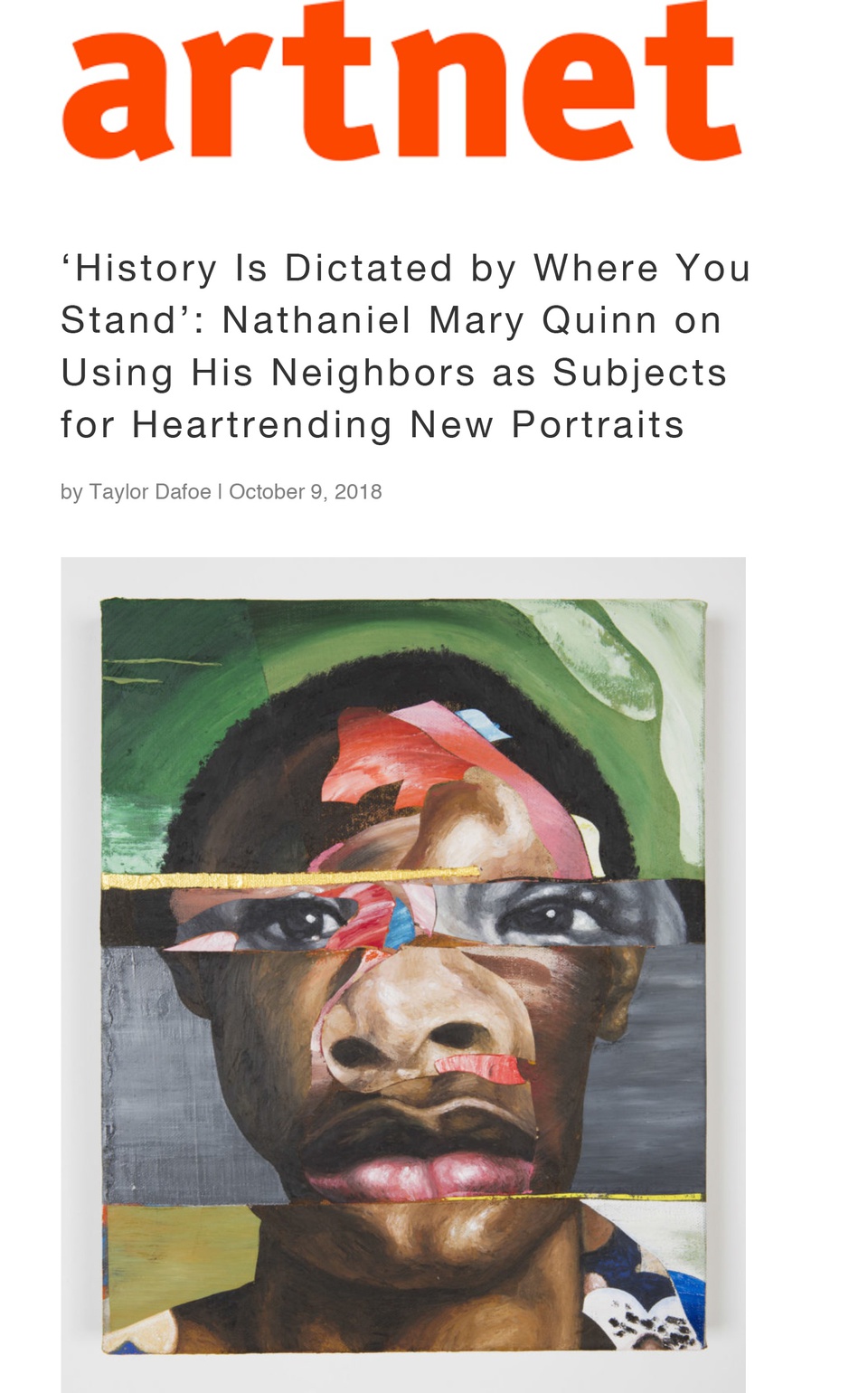 Nathaniel Mary Quinn in Artnet: ‘History Is Dictated by Where You Stand’ • October 9, 2018